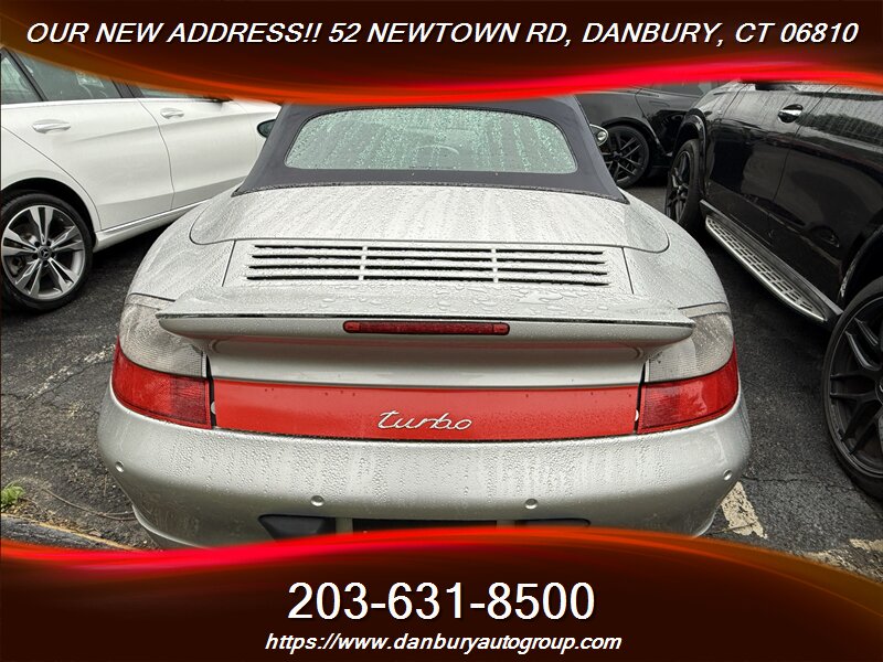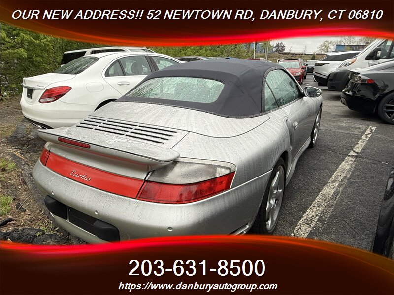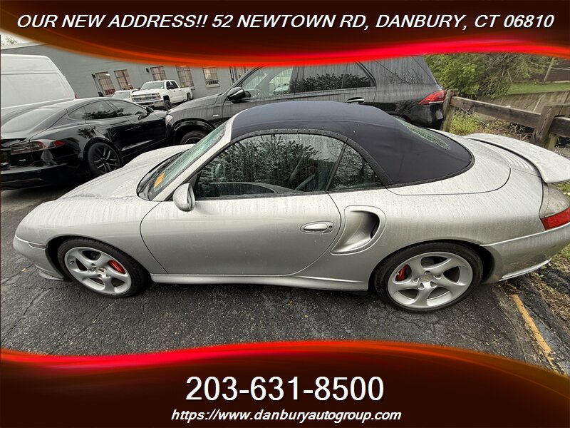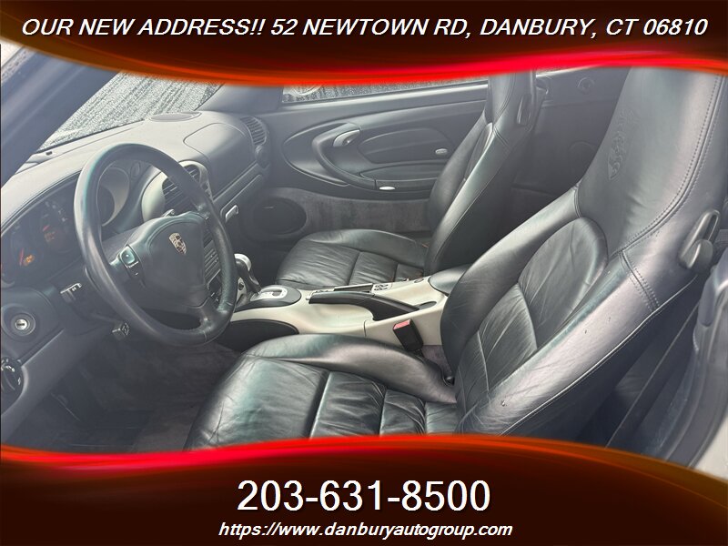 Black on black 2004 Porsche 911 Turbo, powered by a 3L TT H6 DOHC 24V, under 40,000 miles (averaging <2,000/yr), excellent overall condition with a clean CARFAX — this is a low-mileage, track-capable street weapon. Factory-standard hardware includes all-wheel drive with Porsche traction management, Turbo widebody aerodynamics with fixed rear spoiler and functional side intakes, factory 18" Turbo wheels, xenon HID headlights, ventilated disc brakes with ABS and traction control, factory 6-speed manual transmission, full leather heated power sport seats, dual-zone automatic climate control, power windows/locks/mirrors, cruise control, premium audio, front and side airbags and factory security/central locking. Rated 13 MPG city / 21 MPG highway — sharp, uncompromising, and ready now; don’t hesitate if you know what this is worth.