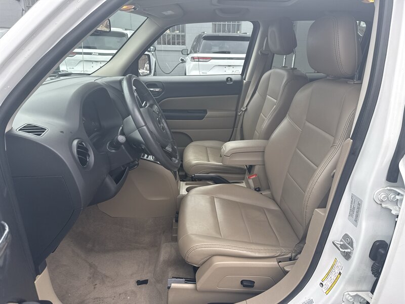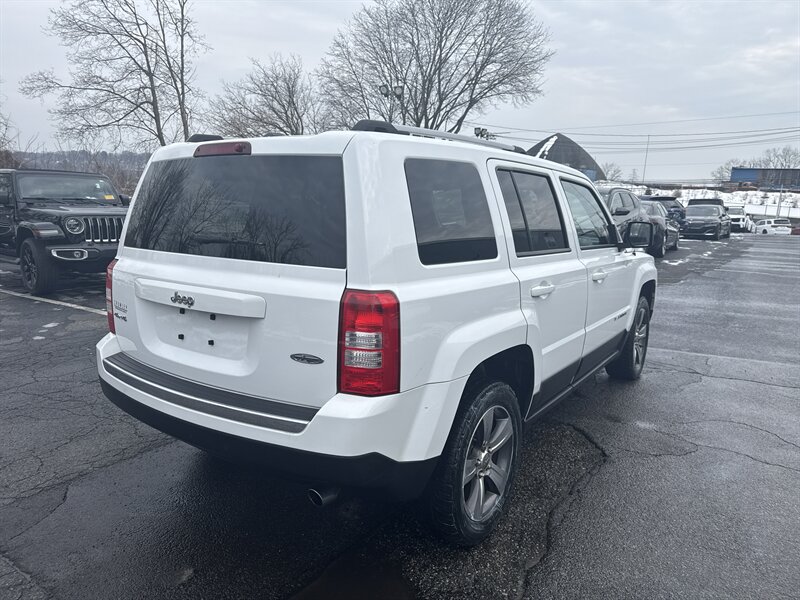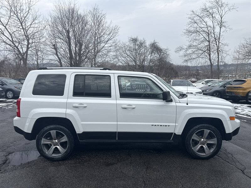 2016 Jeep Patriot Latitude — Bright White Clear Coat exterior, Dark Slate Gray/Light Pebble Beige interior, powered by a 2.4L I4 with 172 hp and 165 lb-ft of torque. Factory-equipped with 17" alloy wheels, roof rails, power door locks and windows, remote keyless entry, cruise control, tilt steering and steering-wheel audio controls; cloth two-tone seating with a 60/40 split-folding rear seat for flexible cargo; Uconnect infotainment with Bluetooth hands-free calling plus USB and auxiliary inputs. Safety is solid with ABS, electronic stability and traction control, front/side and full-length curtain airbags and tire-pressure monitoring. Rated 20 MPG city / 23 MPG highway — one-owner, clean CARFAX and in excellent overall condition. Ready to go — no excuses.