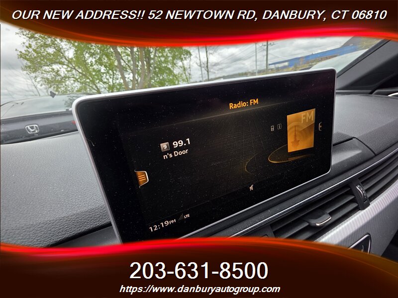 2017 Audi A4 2.0T quattro Premium Plus — Black exterior, Black leather interior. Driven by a 2.0L turbocharged I4 producing 252 hp and 273 lb-ft, mated to Audi’s quattro AWD and responsive 7-speed S tronic. Factory-equipped with leather seating, heated power-adjustable front seats with memory, dual-zone automatic climate control, panoramic sunroof, Audi MMI infotainment with color display, Bluetooth, USB and HD Radio, Xenon headlamps with LED daytime running lights, power-folding heated mirrors, keyless entry/start, rearview camera with front/rear parking sensors, Audi drive select, ABS, traction/stability control, full airbag suite and TPMS. Excellent overall condition, 24 MPG city / 31 MPG highway, clean CARFAX. Don’t wait — this premium performer won’t hang around.