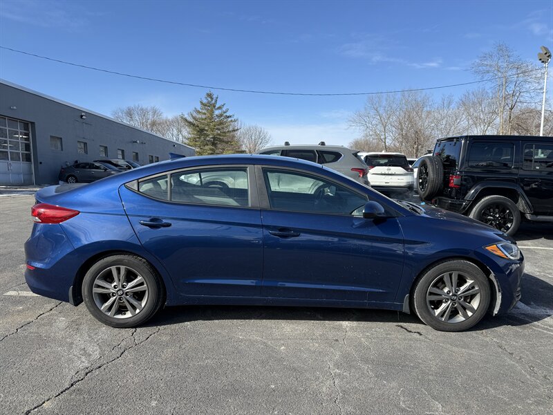 2018 Hyundai ELANTRA SEL Value Package — Blue exterior, Black interior. Driven by the Nu 2.0L I4 (147 hp / 132 lb-ft), rated at 28 MPG city / 37 MPG highway. Factory-equipped with smartphone integration (Apple CarPlay/Android Auto), Bluetooth hands-free, a rearview camera, steering-wheel audio and cruise controls, power windows/locks/mirrors, remote keyless entry, automatic climate control, heated front seats, alloy wheels, USB/AUX inputs with a multi-speaker audio system, LED daytime running lights, and a full suite of safety gear including ABS, stability/traction control, tire pressure monitoring and multiple airbags. Excellent overall condition, clean CARFAX and one owner — move fast.