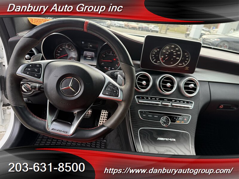 2018 Mercedes-AMG C 63 S — Polar White exterior with Red Pepper/Black Nappa leather interior. Raw 4.0L Twin-Turbo V8 delivering 503 hp and 516 lb-ft, AMG SPEEDSHIFT MCT 7-speed transmission, electronic limited-slip differential, AMG Ride Control adaptive dampers, AMG performance exhaust and high-performance brakes on factory 19" AMG wheels. Factory equipment includes bolstered AMG sport seats with power adjustments and memory, flat-bottom AMG steering wheel with paddle shifters, COMAND infotainment with navigation and Bluetooth, dual-zone automatic climate control, LED headlights/taillights, parking sensors and rearview camera, full suite of airbags plus traction and stability control and active braking assist. Below 43,000 miles (averaging under 5,000 miles/year), 17 MPG city / 23 MPG highway, excellent overall condition and a clean CARFAX. This is uncompromised performance — don’t hesitate.