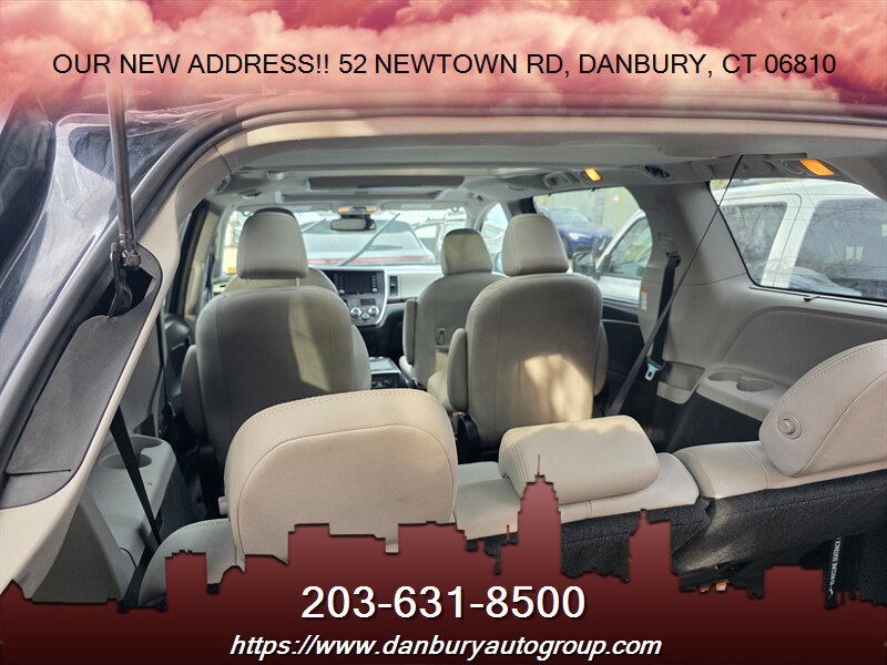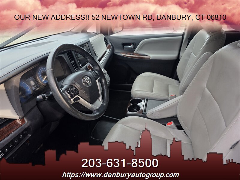 2018 Toyota Sienna XLE 7-Passenger — Midnight Black Metallic exterior, Black leather interior. Powered by a muscular 3.5L V6 (296 hp, 263 lb-ft) and delivering 18 MPG city / 24 MPG highway. Factory-equipped XLE features include leather-trimmed seating with second-row captain’s chairs, heated front seats and power-adjustable driver’s seat, power sliding doors and power liftgate, tri-zone automatic climate control, Entune touchscreen audio with Bluetooth and USB, rearview camera, Toyota Safety Sense P (pre-collision with pedestrian detection, adaptive cruise control, lane departure alert with steering assist, automatic high beams), blind-spot monitor with rear cross-traffic alert, keyless entry with push-button start, alloy wheels and fog lights. Excellent overall condition, one-owner vehicle with a clean CARFAX — this Sienna won’t wait.