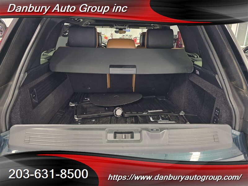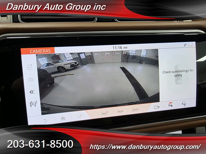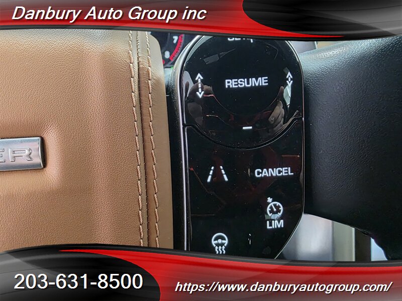 Factory-default equipment reads like a championship resume: adaptive air suspension with automatic load-leveling and adjustable ride height, Terrain Response drive modes, full premium leather interior with heated/ventilated power front seats and memory, panoramic sunroof, Touch Pro Duo infotainment with navigation and Meridian premium audio, power tailgate, keyless entry/ignition, multi-zone automatic climate control, LED lighting, 360° camera with front/rear parking sensors, blind-spot monitoring and rear cross-traffic alert — built to dominate.