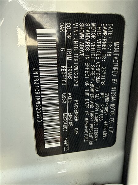 2019 Nissan Rogue Sport S — Glacier White exterior, Black cloth interior. No-nonsense 2.0L I4 with 141 hp and 147 lb-ft, paired to Nissan’s CVT and standard FWD. Efficient at 24 MPG city / 30 MPG highway. Excellent overall condition with a clean CARFAX.