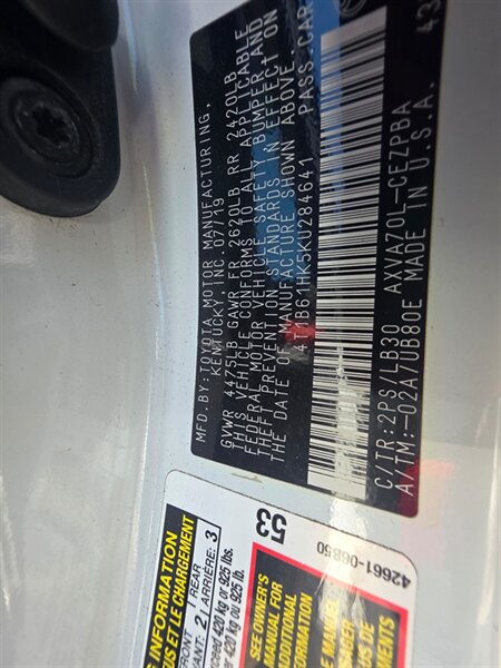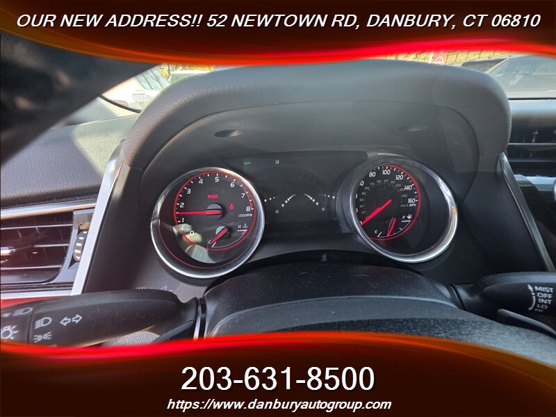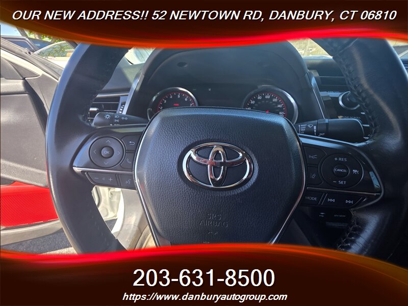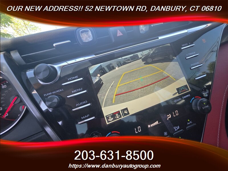 Don’t wait — this 2019 Toyota Camry XSE snarls with a 2.5L I4 delivering 206 hp and 186 lb-ft through an 8-speed automatic, returning 28 MPG city / 39 MPG highway. Factory-equipped with Toyota Safety Sense-P (pre-collision w/ pedestrian detection, lane departure alert w/ steering assist, dynamic radar cruise control, automatic high beams), LED headlights/taillights, blind-spot monitor with rear cross-traffic alert, dual-zone automatic climate control, push-button start and smart key, leather sport seats (power driver, heated front seats) in striking red, sport-tuned suspension, 18" alloy wheels, paddle shifters, Entune touchscreen infotainment with Bluetooth/USB/HD Radio, backup camera, power windows/locks and dual exhaust. Clean CARFAX, excellent overall condition — step up and own it.