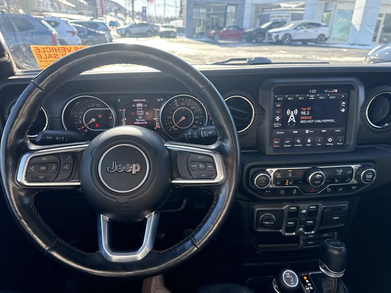 Ready to dominate: 2021 Jeep Wrangler Unlimited Sahara with the proven 3.6L V6 (285 hp, 260 ft-lbs) and smooth 8-speed automatic paired to full-time 4x4 hardware. Factory-equipped with leather-trimmed seating, power front windows and locks, remote keyless entry, Uconnect touchscreen infotainment with Apple CarPlay/Android Auto and Bluetooth, dual-zone automatic climate control, cruise control and steering-wheel controls, backup camera, full ABS/airbag/traction & stability systems and factory tow hooks—everything you need, no excuses. Black Clear Coat exterior, Black leather interior, 17 MPG city / 23 MPG highway. Excellent overall condition, clean CARFAX and one owner — step up and take it.