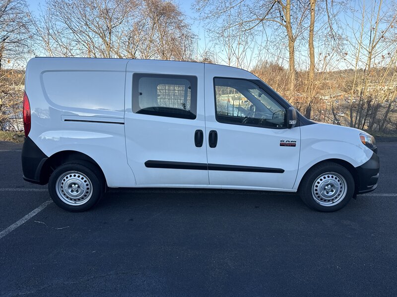 The 2021 RAM ProMaster CITY TRADESMAN is a versatile and efficient commercial vehicle, powered by a Tigershark MultiAir 2 2.4L I4 engine delivering 178 horsepower and 174 lb-ft of torque. With an exterior finish in Bright White Clear Coat and a durable Black vinyl interior, it combines practicality with a professional appearance. This model features a standard cargo area designed for maximum utility, including a 131.7 cubic feet cargo capacity, rear barn doors for easy access, and a low floor height for convenient loading. Inside, you'll find essential technology such as a 5-inch touchscreen display, Bluetooth connectivity, and a rearview camera for added safety. With an impressive fuel efficiency rating of 21 MPG in the city and 28 MPG on the highway, this ProMaster CITY TRADESMAN is an excellent choice for those seeking reliability and performance in their work vehicle. This unit is in excellent overall condition, ready to meet your business needs.