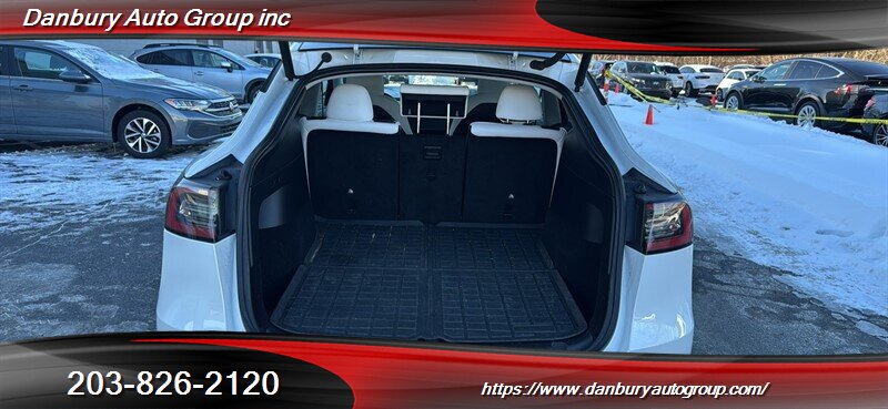 Factory-equipped with the Long Range dual-motor drivetrain, 15" central touchscreen with built-in navigation, streaming and over-the-air updates, standard Autopilot (Traffic-Aware Cruise Control + Autosteer), full LED lighting, panoramic all-glass roof, power liftgate, premium Black & White vegan leather seating with heated front seats, keyless entry, multiple USB ports and a comprehensive safety suite including automatic emergency braking and lane-keeping assist.