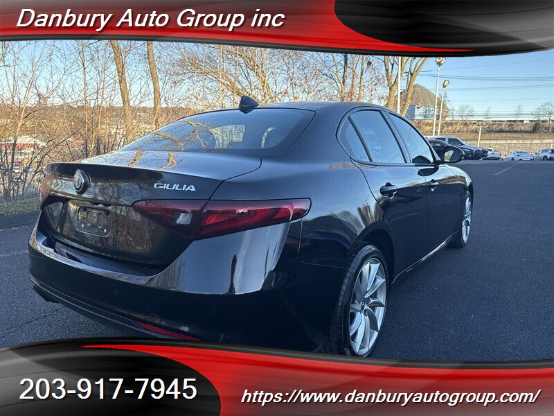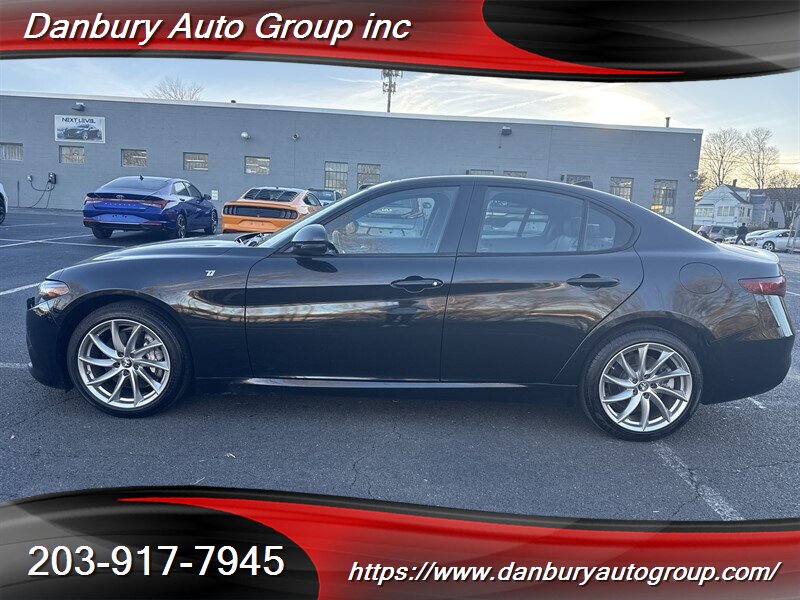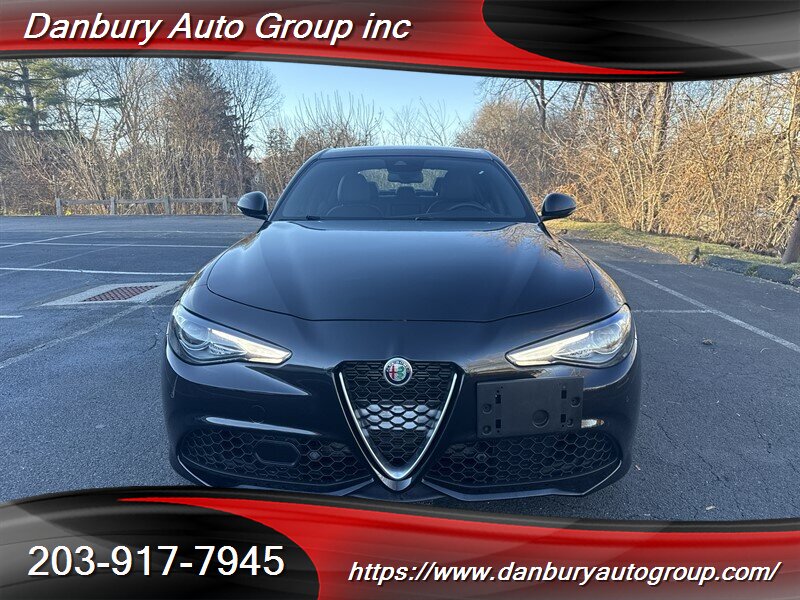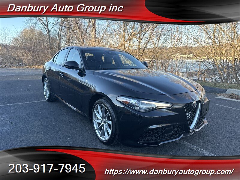 Ready to dominate: 2022 Alfa Romeo Giulia Ti in Vulcano Black Metallic with Black leather — 2.0L Turbo I4 producing 280 hp and 306 lb-ft mated to an 8-speed automatic with the Alfa DNA drive-mode selector and steering-wheel paddle shifters for razor-sharp response. Factory equipment includes heated power leather front seats, dual-zone automatic climate control, keyless entry with push-button start, LED headlights, alloy wheels, an infotainment display with Apple CarPlay/Android Auto and Bluetooth, rearview camera, blind-spot monitoring with rear cross-traffic alert and collision mitigation features, plus a host of driver assists. Under 49,000 miles (avg <10k/yr), excellent condition, clean CARFAX, one owner, and 23 MPG city / 31 MPG highway — move fast.