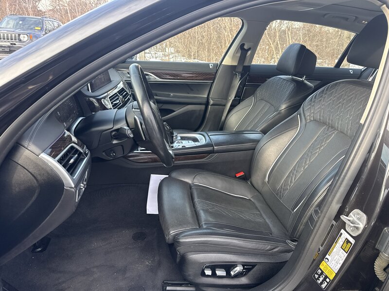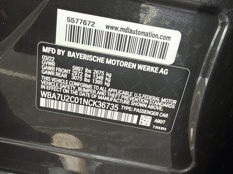 This 2022 BMW 750i xDrive is a black-on-black beast: 4.4L Twin Turbo V8 delivering 523 hp and 553 lb-ft, mated to BMW’s smooth 8-speed automatic with xDrive all-wheel drive — raw power, refined control. Factory-equipped highlights include adaptive air suspension and multiple drive modes, adaptive LED headlights, large leather seating with power adjustment/memory and heated/ventilated front seats, four-zone automatic climate control, panoramic sunroof, BMW iDrive infotainment with navigation, Apple CarPlay/Android Auto compatibility, wireless charging, premium sound, parking sensors with surround-view camera, and a full suite of driver-assist safety tech (adaptive cruise, lane-keeping aids, blind-spot detection, automatic emergency braking). Below 15,000 miles (under 3,000 miles/year), rated 17 city / 24 hwy, excellent overall condition, one-owner and clean CARFAX — no nonsense, just a high-performance luxury sedan ready to dominate. Act fast.