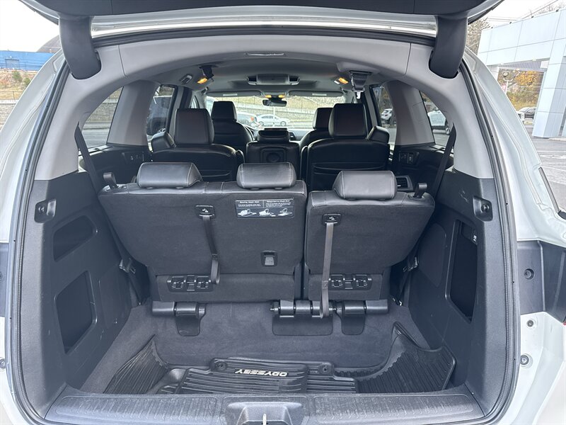 The exterior is finished in a sleek Platinum White Pearl, while the interior boasts luxurious black leather seating, providing both style and comfort for all passengers. The Odyssey Touring is equipped with a range of factory default features, including a high-resolution touchscreen infotainment system, Apple CarPlay and Android Auto compatibility, and a premium audio system for an enhanced driving experience. Safety is a priority, with Honda Sensing suite, which includes adaptive cruise control, lane-keeping assist, and collision mitigation braking.