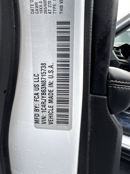 The exterior is finished in a sleek Bright White Clear Coat, complementing its rugged yet refined design. Inside, you'll find a luxurious Black leather interior that exudes comfort and sophistication. This model comes loaded with factory-default features including a premium audio system, advanced navigation, and a suite of driver-assistance technologies designed to enhance safety and convenience.