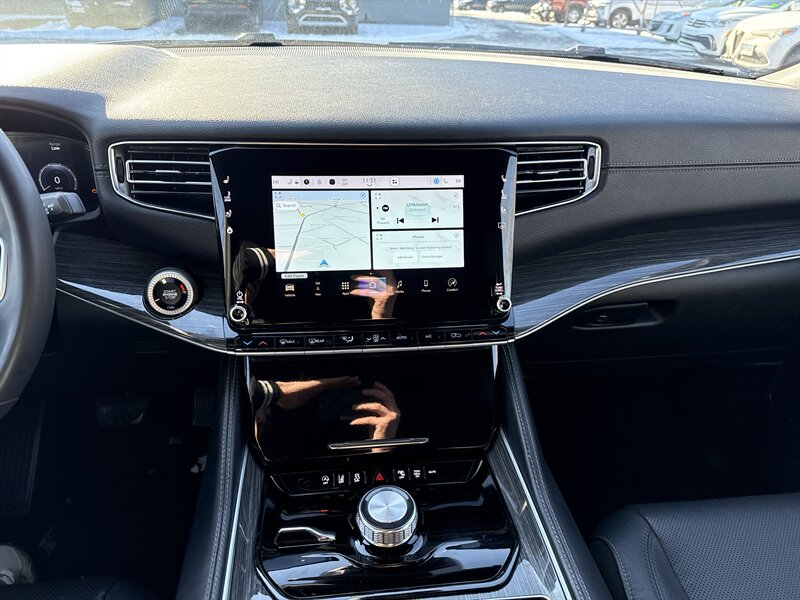 Introducing the 2022 Jeep Wagoneer Series II, a perfect blend of luxury and capability. Powered by a HEMI eTorque 5.7L Mild Hybrid V8 engine, it delivers an impressive 392 horsepower and 404 ft-lbs of torque, ensuring a powerful performance on and off the road. The exterior boasts a sleek Diamond Black Crystal Pearl Coat, while the interior features a sophisticated Global Black finish, offering a modern and refined atmosphere.