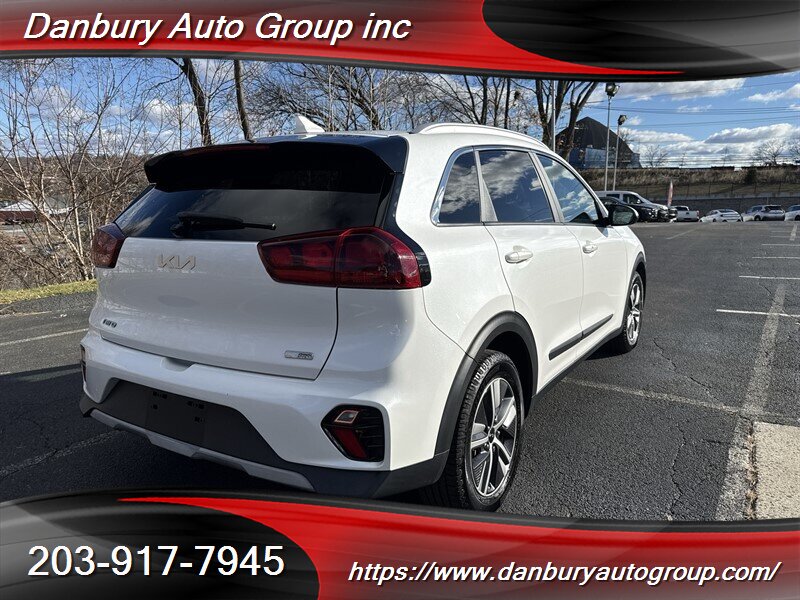 One-owner 2022 Kia Niro Plug-In Hybrid LXS in Snow White Pearl with Black leather — powered by the 1.6L Plug-in Hybrid I4 (139 hp, 195 ft. lbs.) and delivering 48 MPG city / 44 MPG highway. Factory equipment includes an 8" touchscreen infotainment system with Apple CarPlay & Android Auto, Bluetooth and USB ports, 6-speaker audio, rearview camera, remote keyless entry, power windows/locks, steering-wheel audio and cruise controls, automatic headlights with LED daytime running lights, alloy wheels, regenerative braking and full plug-in charging capability. Safety comes standard with Kia SmartSense features such as Forward Collision-Avoidance Assist, Lane Keeping Assist and Driver Attention Warning. Excellent overall condition, clean CARFAX — one owner. Move fast; this one won’t hang around.