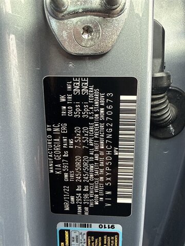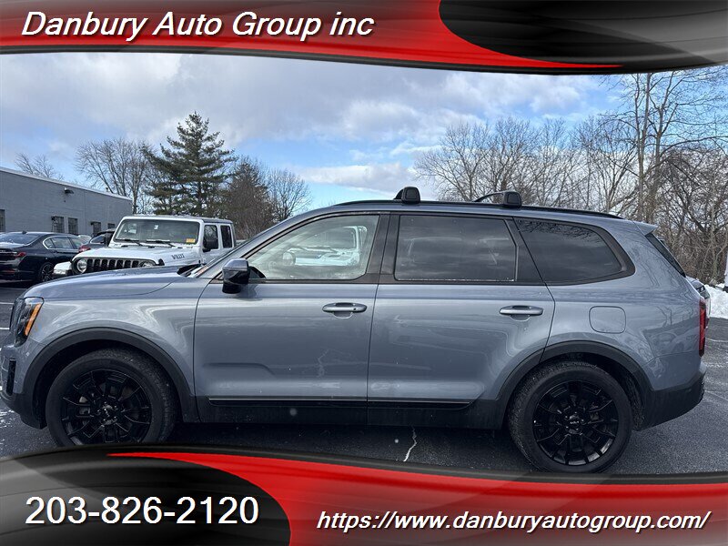 2022 Kia Telluride SX Nightfall with the 3.8L V6 (291 hp, 262 lb-ft) in Everlasting Silver with a Black interior. Under 26,000 miles (avg. <7,000/yr), 19 MPG city / 24 MPG highway, one-owner, clean CARFAX, excellent overall condition.