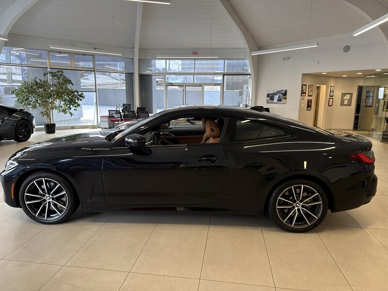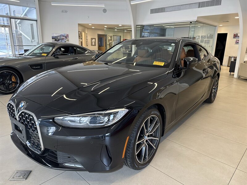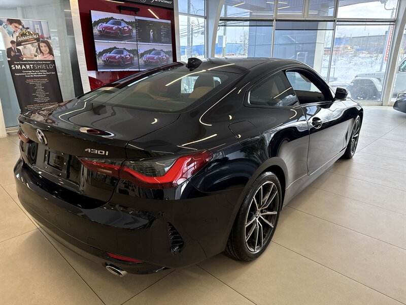 Introducing the 2023 BMW 430i xDrive, a sophisticated blend of performance and luxury. Powered by a robust 2.0L Turbo I4 engine, it delivers 255 horsepower and 294 ft-lbs of torque, ensuring an engaging driving experience. The striking Black exterior complements the elegant Cognac leather interior, creating a refined atmosphere.