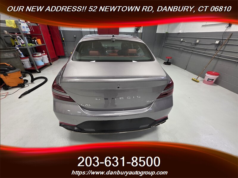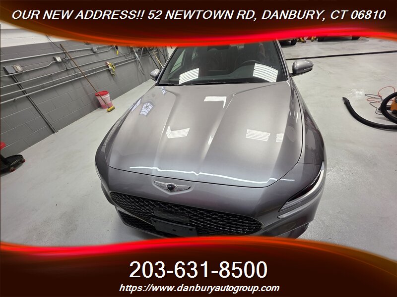 This 2023 Genesis G70 2.0T AWD is a no-excuses sport sedan finished in Savile Silver Metallic with a striking Sevilla Red/Obsidian Black leather interior — powered by a 2.0L Turbo I4 putting out 252 hp and 260 lb-ft, backed by an 8-speed automatic with paddle shifters and full-time AWD. Factory equipment includes LED headlights/DRLs and LED taillights, 18-inch alloy wheels, genuine leather seating surfaces, power-adjustable front seats, dual-zone automatic climate control, Genesis infotainment with smartphone integration (Apple CarPlay/Android Auto), Bluetooth and USB connectivity, keyless entry with push-button start, rearview camera, and the full Genesis Smart Sense safety suite (Forward Collision-Avoidance with Pedestrian Detection, Blind-Spot Collision-Avoidance, Rear Cross-Traffic Collision-Avoidance, Lane Keeping/Following Assist, Driver Attention Warning, High Beam Assist, and more). Below 10,000 miles (under 3,000 miles per year), excellent overall condition, 21 MPG city / 31 MPG highway, clean CARFAX and one owner — serious performance and luxury, ready now.