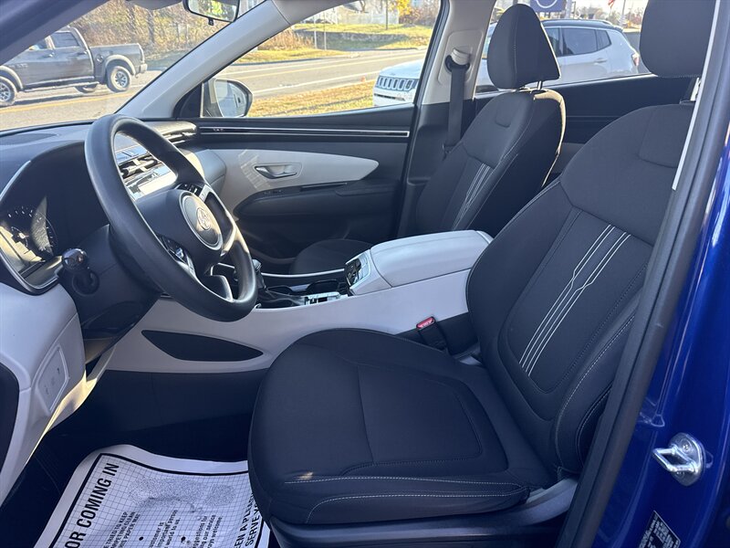 Introducing the 2023 Hyundai TUCSON SEL, a versatile compact SUV that combines style and performance. Powered by a 2.5L I4 engine delivering 187 horsepower and 178 ft-lbs of torque, this vehicle offers a balanced driving experience. The striking Intense Blue Metallic exterior is complemented by a sleek Black interior, creating a modern and sophisticated look.
