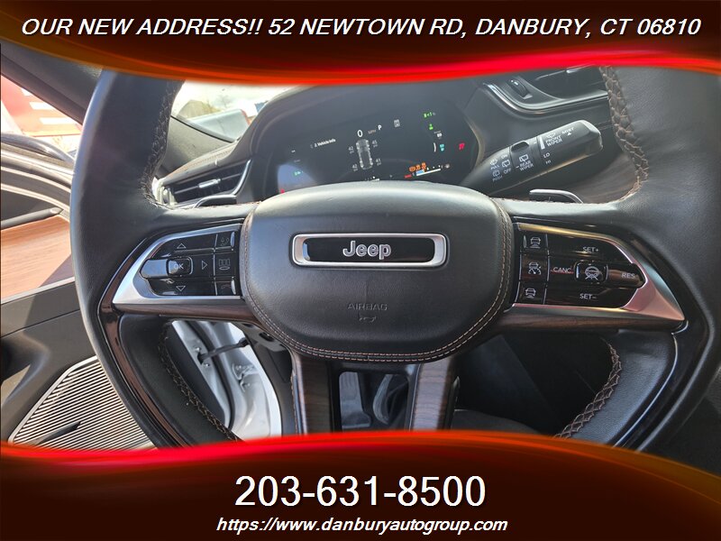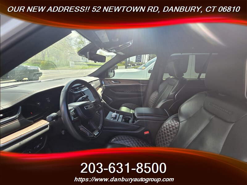 Factory-loaded Summit trim: premium leather seating with heated/ventilated front seats and heated rear seats, heated leather steering wheel and power memory front seats; panoramic sunroof, adaptive air suspension with selectable drive modes for true on- and off-road capability, full-time 4x4 system; Uconnect 5 infotainment with large touchscreen, wireless Apple CarPlay/Android Auto, navigation, wireless charging and multiple USB ports; advanced driver-assist suite (adaptive cruise with stop-and-go, lane-keep/departure warnings, forward collision mitigation with active braking, blind-spot monitoring with rear cross-traffic alert, surround-view camera and front/rear parking sensors); LED lighting, power liftgate and premium factory alloy wheels. Ready to dominate — no excuses.
