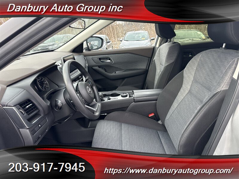 2023 Nissan Rogue SV — Brilliant Silver Metallic with Black leather. Turbocharged 1.5L VC-Turbo I3 (201 hp / 225 lb-ft) with efficient CVT — real economy: 28 MPG city / 35 MPG highway and under 25,000 miles (avg <7,000/yr). Factory-equipped with the comprehensive Nissan Safety Shield 360 suite (automatic emergency braking with pedestrian detection, blind-spot warning, rear cross-traffic alert, lane departure warning and high-beam assist), 8" touchscreen with Apple CarPlay/Android Auto and Bluetooth, heated leather-appointed front seats with power driver’s seat, dual-zone automatic climate control, push-button start with remote start, and full suite of USB ports and connectivity. Clean CARFAX, one owner, excellent condition — no nonsense, ready to drive.