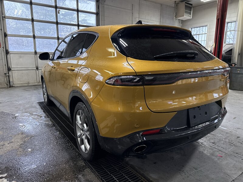 Introducing the 2024 Dodge Hornet R/T Plug-In Hybrid, an impressive blend of performance and efficiency. This dynamic SUV is powered by a robust 1.3L Plug-in Hybrid Turbo I4 engine, delivering 288 horsepower and 383 ft-lbs of torque. With a striking Acapulco Gold exterior and a sleek black interior, this vehicle exudes modern style.