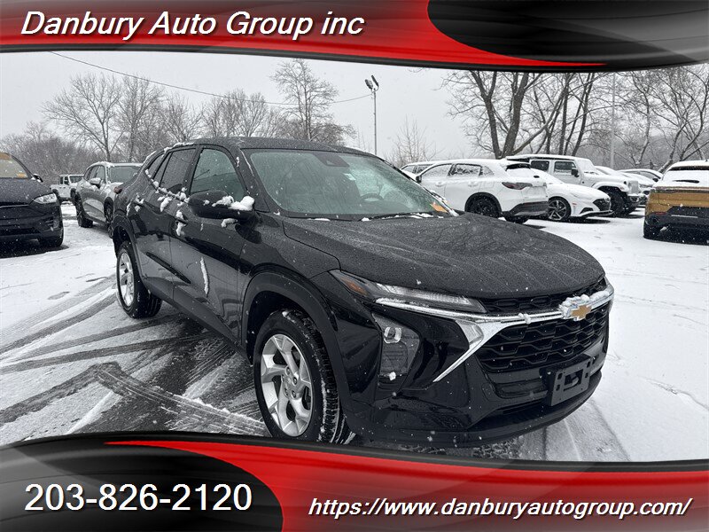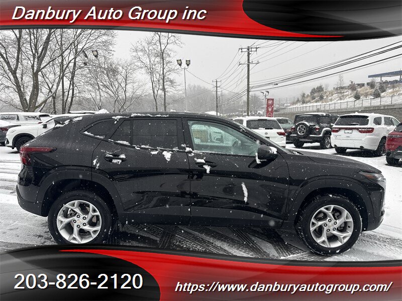 2025 Chevrolet Trax LS — Mosaic Black Metallic exterior, Jet Black/Gray with Blue Accents interior. Powered by the ECOTEC 1.2L FlexFuel Turbo I3 (137 hp, 162 lb-ft), this Trax LS comes factory-equipped with Chevrolet Infotainment with Apple CarPlay and Android Auto, Bluetooth hands-free calling, USB charging ports, cloth seating with 60/40 split-fold rear seats for cargo flexibility, remote keyless entry, power windows and locks, air conditioning, tilt steering, and a Rear Vision Camera. Safety suite is built in: ABS, traction and stability control, multiple airbags and driver-assist tech to keep you sharp. Excellent overall condition, clean CARFAX, one owner — don’t sit on it.